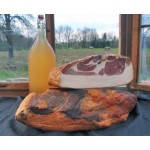 Das Beste vom Hinterteil des Schweines, wird ohne Pökelsalz nur mit Bergkernsalz, Gewürzen und frischem Knoblauch gesurt, und anschließend sanft kalt mit Buchen-Sägespänen geräuchert.
